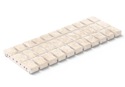 La colección Crosscut se inspira en el Travertino, piedra emblemática de la arquitectura clásica italiana, de tono beige claro. Su nombre, Crosscut, honra el corte transversal dado a los bloques originales de la piedra, alterando su apariencia habitual. Destaca por su textura y sus cavidades naturales, otorgándole singularidad. Ofrece una amplia gama de matices e intensidades en su tonalidad. Disponible en tres tonos: Petra, su color natural, Cloud, una variante grisácea y Puro, luminoso y sereno con su gama neutra de blancos y grisáceos claros.