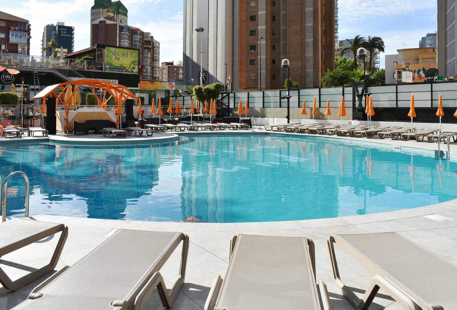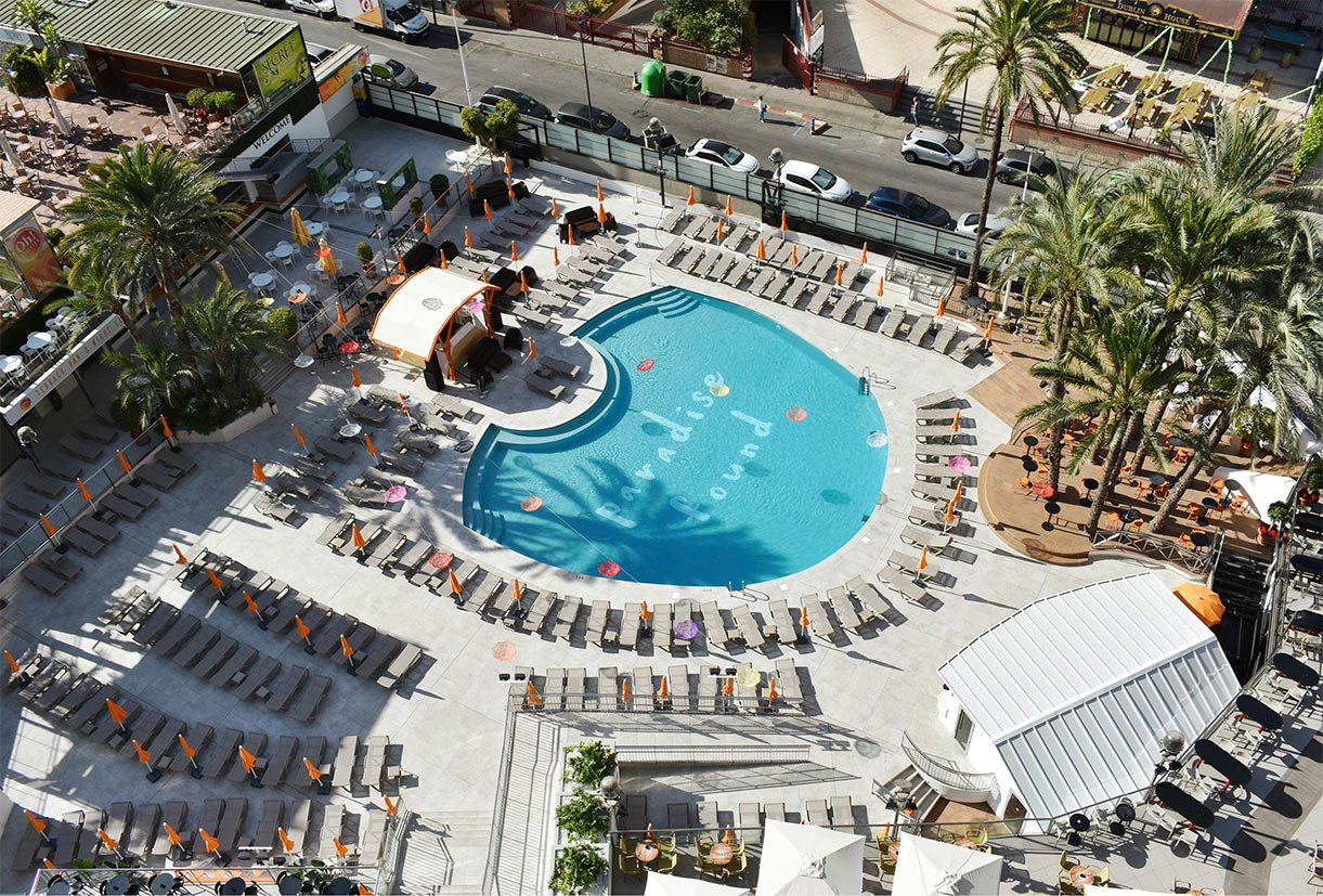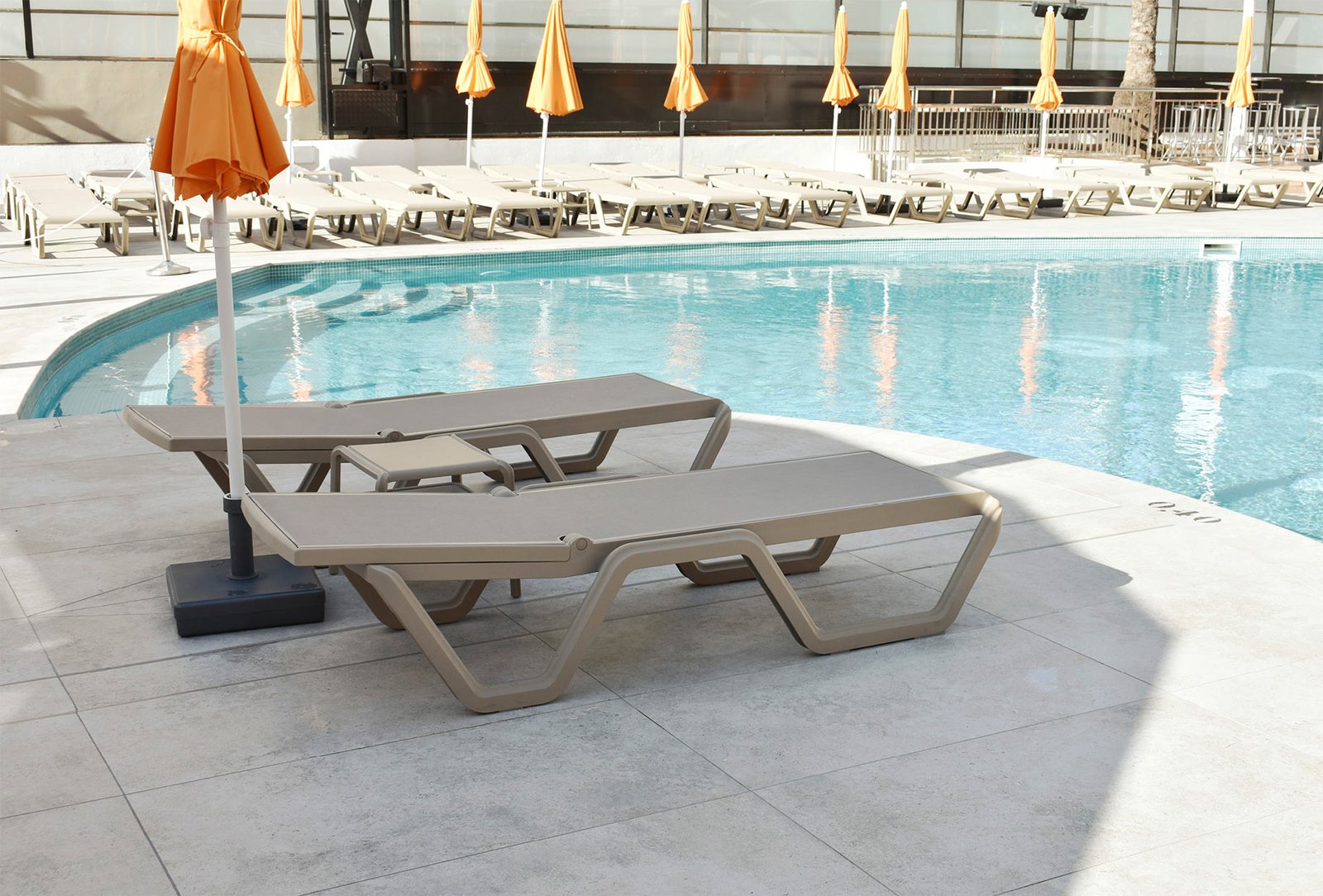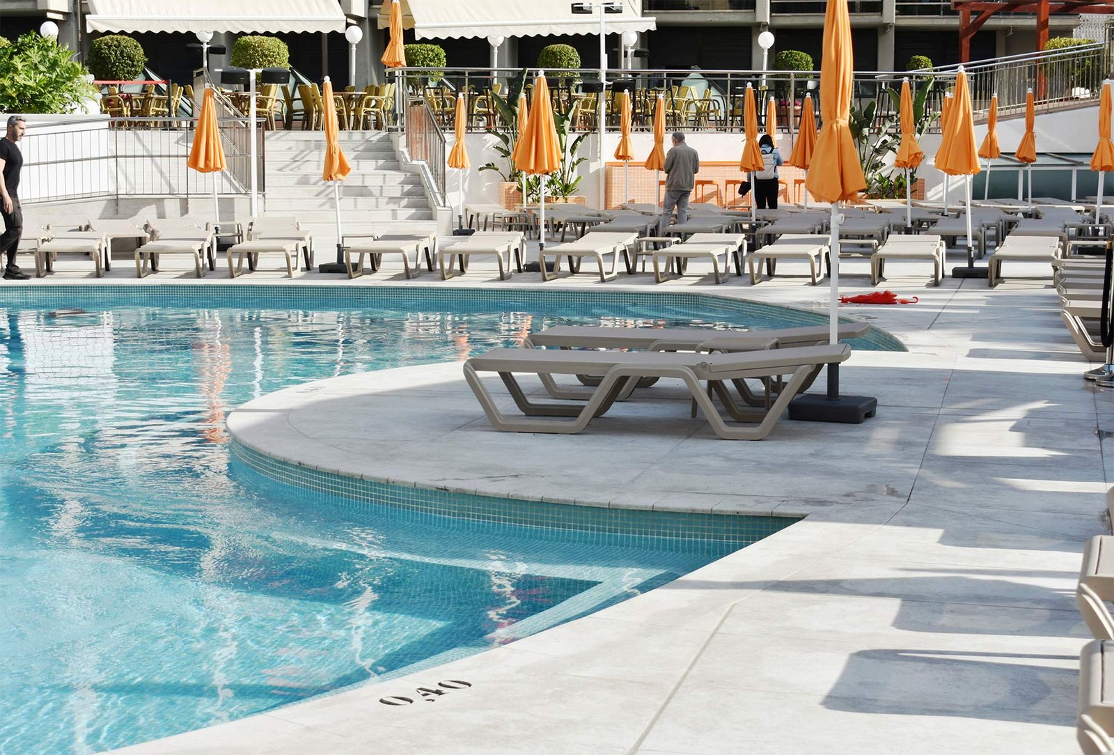 El Hotel Marina se situa a escasos metros de la playa de Benidorm. Para su reforma exterior emplearon el color Crosscut Cloud, que armonizaba con todos los espacios exteriores del hotel. Las piezas especiales utilizadas fueron el borde Creta de 33x50cm, la rejilla de drenaje RJ67 de 25x50cm y los peldaños rectos de gran formato 33x120cm para todas las escaleras.